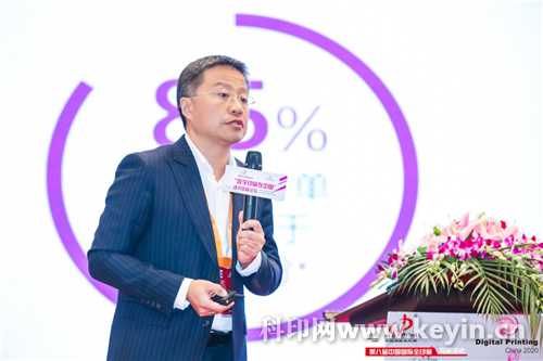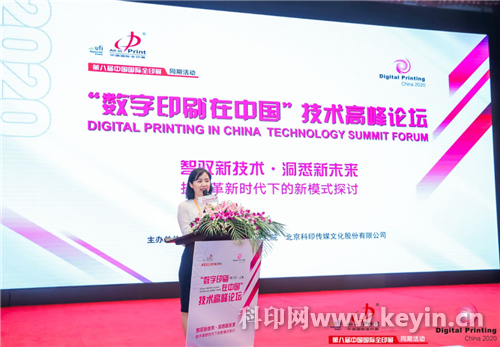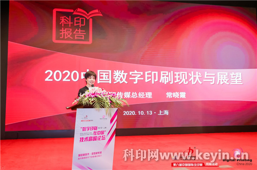 論壇伊始,中國印刷技術協會副理事長、北京科印傳媒文化股份有限公司總經理常曉霞對過往一年我國數字印刷業發展現狀進行分析,本次活動,她發表了題為《2020中國數字印刷現狀與展望》的科印報告,指出了當下數字印刷市場中,高產能的輪轉高速噴墨印刷設備和入門級的靜電數字印刷設備裝機正在迎來新的發展機遇,噴墨印刷市場即將進入新的發展階段,并介紹了數字印刷在不同應用領域中的發展現狀,用案例啟迪企業思變,得到了與會者們熱烈掌聲。