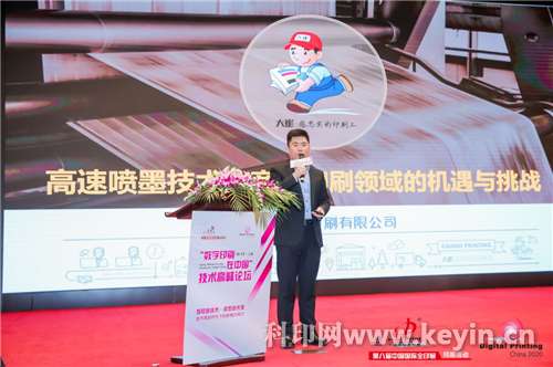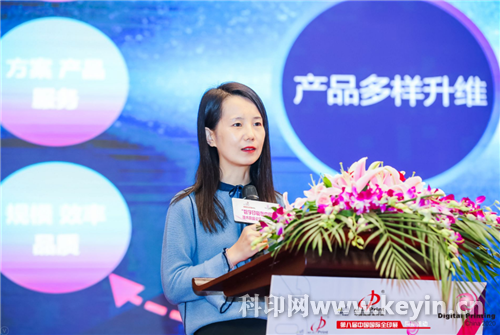 山東盈科杰數碼科技有限公司董事長董瑛以《從噴墨領域看數字印刷》為題,分享了盈科杰在高速噴墨印刷領域的探索及對未來市場的愿景。